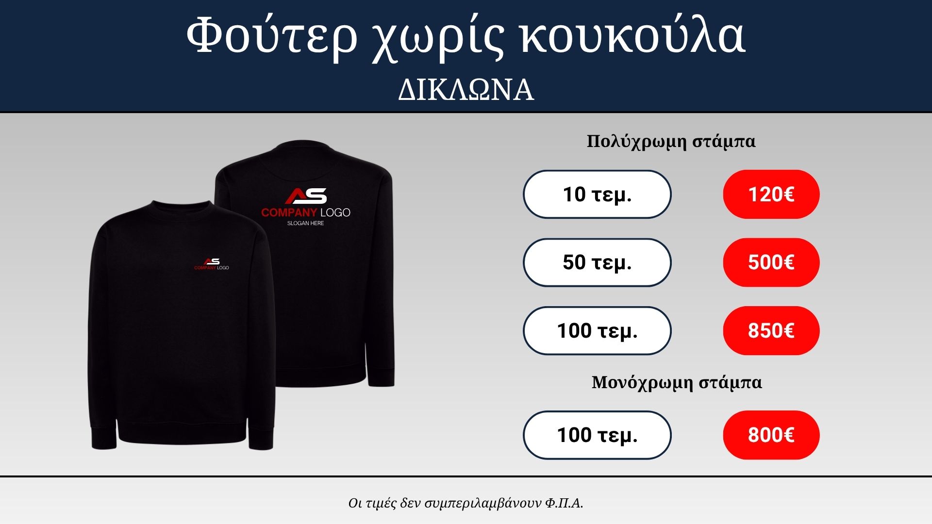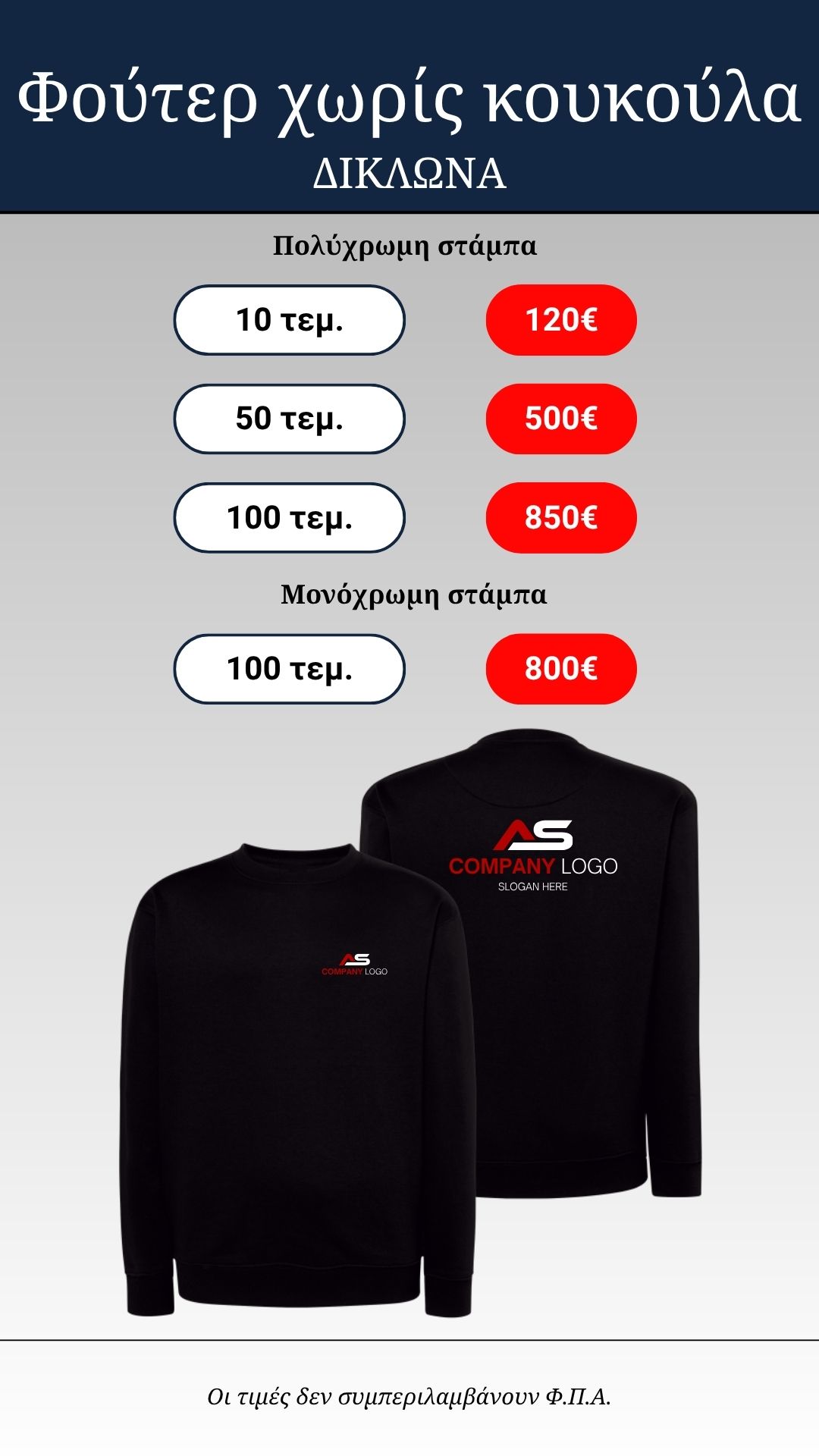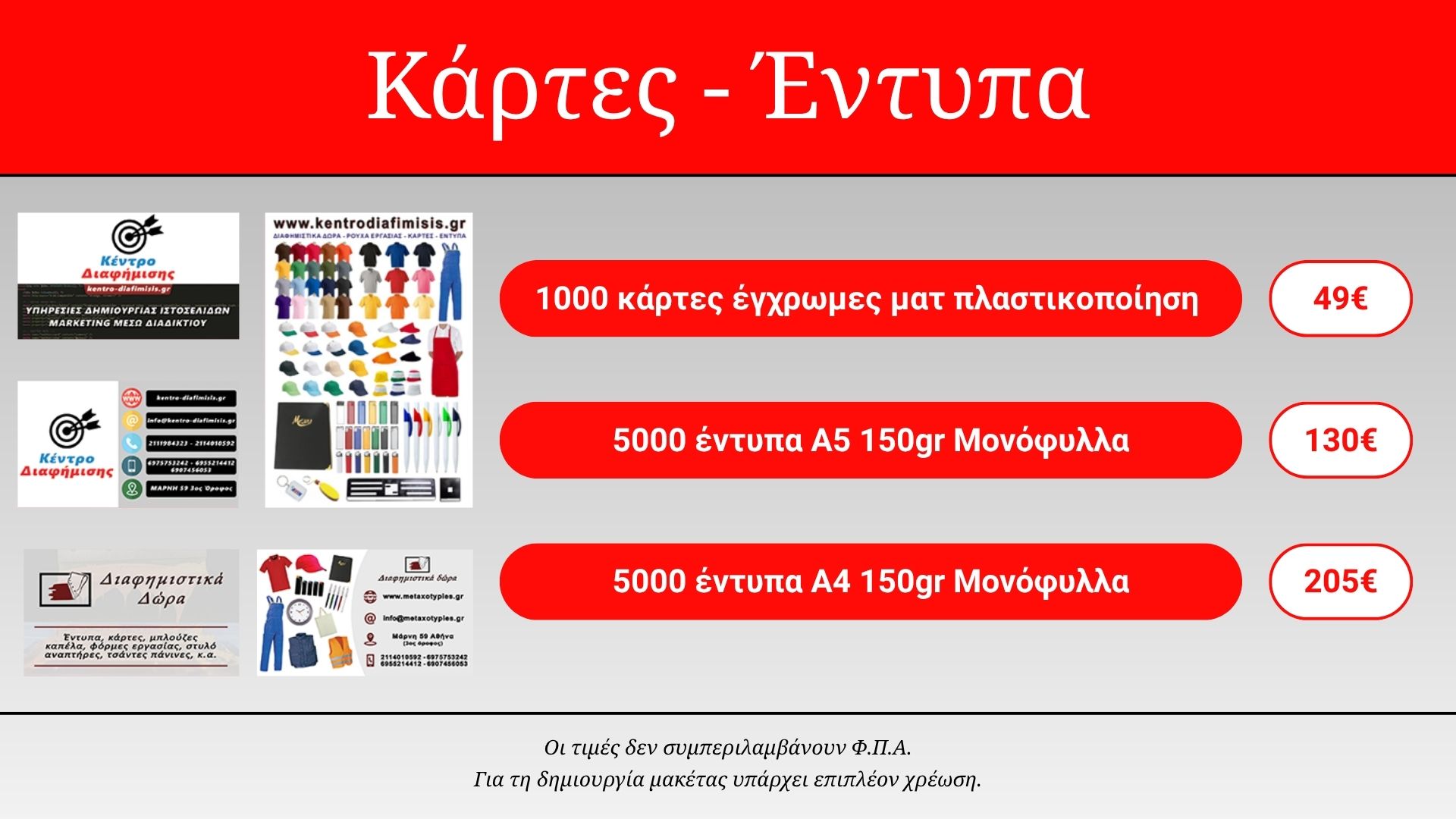Για να πετύχουμε το καλύτερο αποτέλεσμα για τους πελάτες μας διαθέτουμε υπηρεσίες σχεδιασμού και εκτύπωσης παρέχοντας μια ολοκληρωμένη λύση.