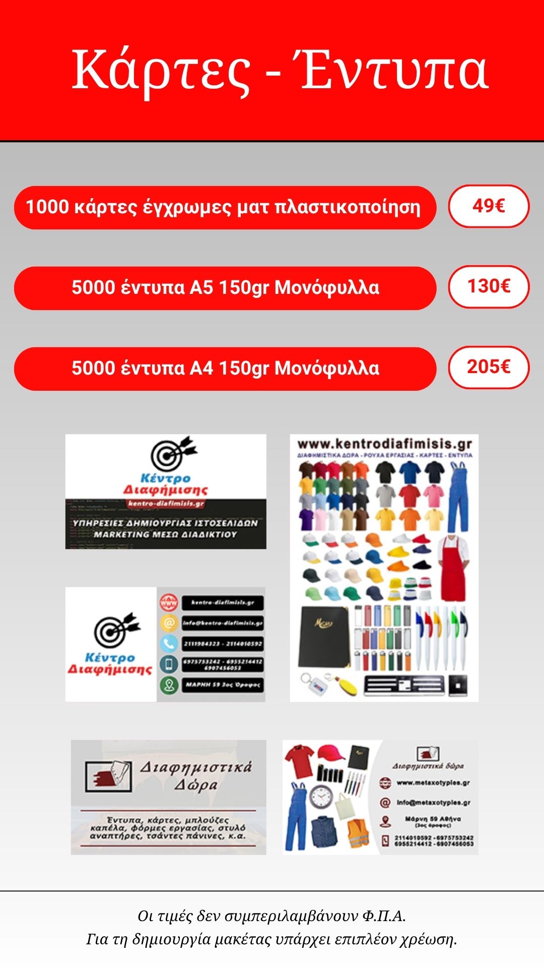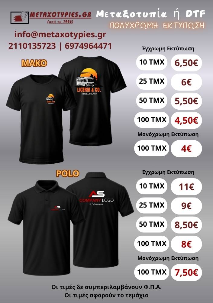 Δραστηριοποιούμαστε στο χώρο των εκτυπώσεων με έδρα το Κερατσίνι Αττικής.
